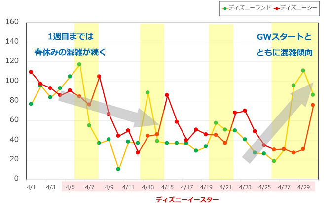 ディズニーランド 混雑 予想 4 月